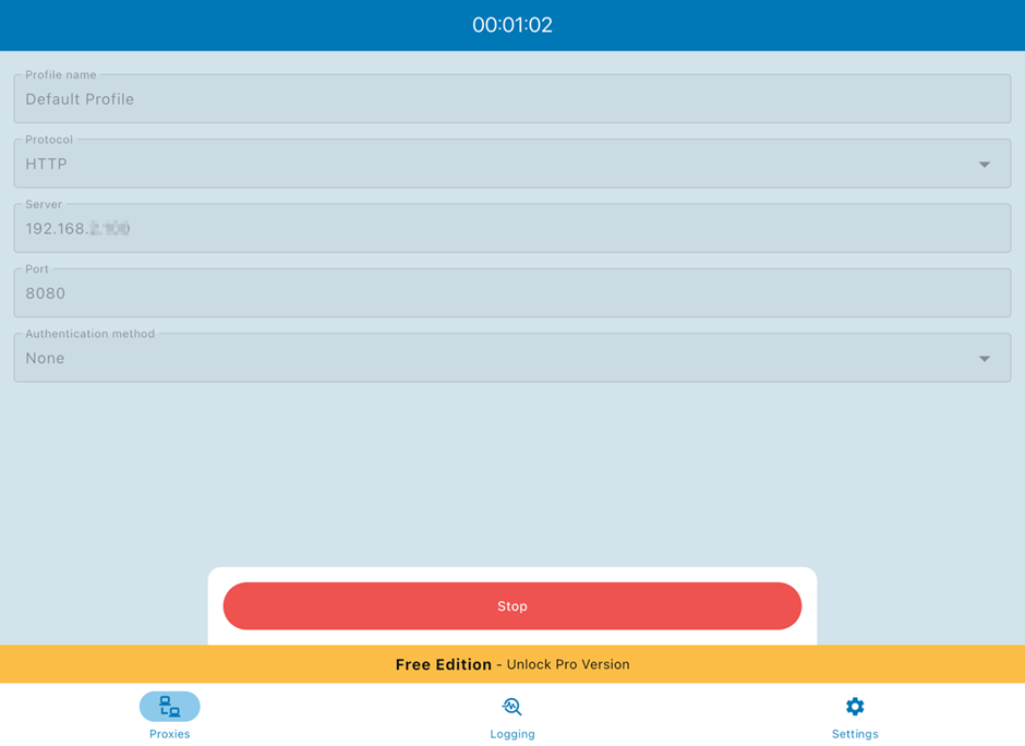 Since the application might have been using direct socket connections, I decided to set up a device-wide proxy.